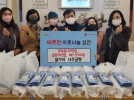 수원시 영통구 매탄1동 설가네 나주곰탕 매탄점에서 지난 28일, 설명절을 맞이하여 어려운 이웃에게 전해달라며 곰탕 50인분, 마스크 500장과 장학금 100만원을 후원했다. 이날 전달받은 장학금과 후원물