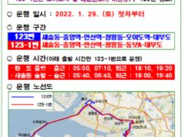 안산시는 대부도 주민들의 시내버스 123번 이용편의를 높이기 위해 출퇴근 시간에 시흥 배곧신도시와 오이도역을 경유하지 않고 바로 안산 도심으로 직행하는 ‘123-1’번 버스 노선을 신설했다고 27일 밝혔