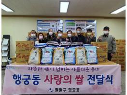 팔달구 행궁동은 지난 25일 설 명절을 맞이해 주변의 저소득 가정 등 어려운 이웃을 돕기 위한 쌀 전달식을 개최했다. 이번 설 명절 이웃돕기에는 행궁동의 각 단체들과, 종교기관, 시장 상인회, 기업체 등