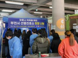 “작은 정성 모아 세밑에 따듯한 손길로 코로나 이겨내요.” 부천시소상공인연합회와 햇살상인협동조합, 순수덮밥디에이치푸드, 사회적협동조합 건강한세상 등 부천지역 소상공인들의 작은 손길이 세밑을