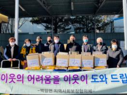 용인시 처인구 백암면은 20일 지역사회보장협의체가 설 명절을 앞두고 공적 지원을 받지 못하는 취약계층 15가구에 생필품을 지원했다고 밝혔다.이날 협의체 위원 15명은 대상 가구를 방문해 쌀, 국수, 즉석