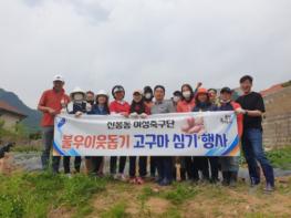 용인시 수지구 신봉동은 신봉동 여성축구단이 어려운 이웃을 돕기 위해 고구마 심기 행사를 열었다고 19일 밝혔다.여성축구단원을 비롯한 동 직원 등 20여명은 지난 18일 신봉동 소재 약 200여평 규모의 텃