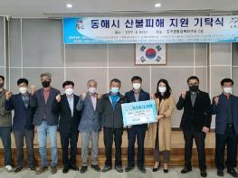 광주시 도척면 주민들이 산불로 피해를 입은 동해시를 위해 성금을 모아 전달했다.도척면 주민 20여명은 6일 도척면 행정복지센터를 방문, 동해시 산불피해 복구와 이재민 지원을 위해 써달라며 성금 840만