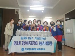 세종특별자치시 새롬동(동장 김산옥)이 한국자유총연맹 세종시지부 새롬동분회(회장 조복자)와 11일 관내 취약계층 어려운 이웃에게 직접 조리한 밑반찬을 만들어 전달했다. 이날 자유총연맹회원들은 장조림