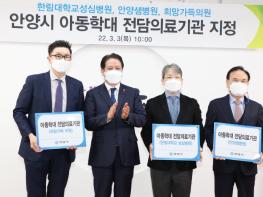 아동학대 전담의료기관 지정서 전달식이 3일 안양시청(3층 접견실)에서 있었다. 지정된 의료기관은 ?한림대학교성심병원 ?안양샘병원 ?희망가득병원 등 3개 기관이다. 최대호 안양시장은 이날 3개소 병원 관