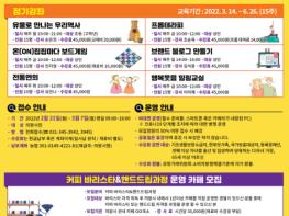 의왕시 청계종합사회복지관은 2022년 상반기 교육문화 프로그램 정기강좌 및 특별강좌 수강생을 모집한다.상반기 정기강좌는 ▲유물로 만나는 우리역사 ▲프롭테라피 ▲온(ON)집집마다 보드게임 ▲브랜드 블