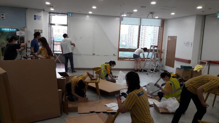 이 날 공간 나눔 활동은 이케아 광명점에서 실제 판매되고 있는 가구와 원예물품을 활용하여 소하노인종합복지관 어르들의 휴식공간을 “이케아존” 으로 새롭게 리모델링하는 형태로 진행되었다.