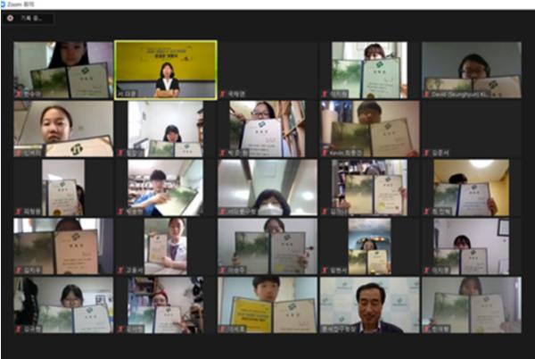 이어 화상으로 청소년의원들이 위촉장을 모두 펼치고 기념 촬영을 하는 퍼포먼스도 펼쳐졌다.