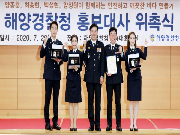 김 청장은 이날 행사에서 3명의 배우에게 위촉장, 홍보대사증과 함께 해양경찰정복 등을 전달했다.