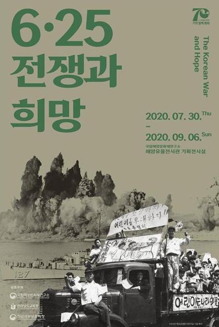 [뉴스시선집중, 조선호기자] 문화재청 국립해양문화재연구소(직무대리 심영섭)는 전라남도교육청(교육감 장석웅), 전남서부보훈지청(지청장 박영숙)과 함께 7월 30일부터 9월 6일까지 국립해양문화재연구소 해양유물전시관(전남 목포시 소재)에서「6·25, 전쟁과 희망」특별전을 개최한다.