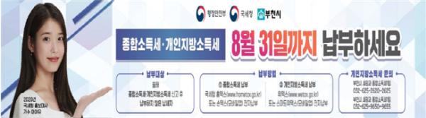 [뉴스시선집중, 박동혁기자] 부천시는 종합소득세와 개인지방소득세의 납부기한이 도래함에 따라 미납 납세자에게 이달 말까지 납부해 줄 것을 당부하며 홍보에 나섰다.