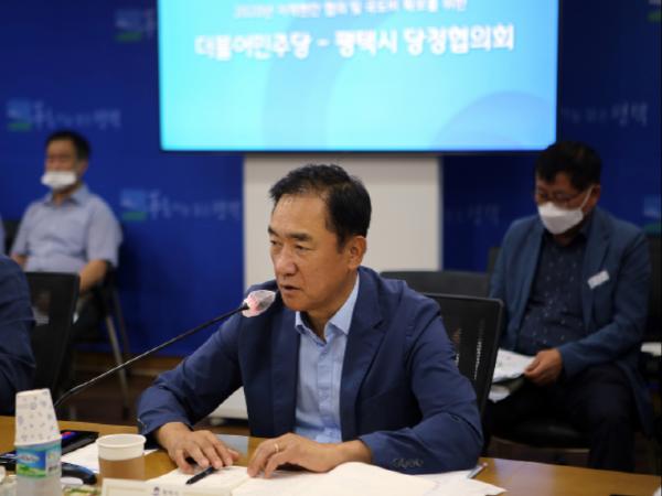 시에서는 집중호우 피해상황 및 대응방안을 비롯해 군 소음 피해 정당 보상 실현, 고덕일반산업단지 공공폐수처리시설 2단계 설치사업, 평택호 수질개선 협의회 구성, GTX-C노선 평택연장 등 21개 안건을 설명하고 당차원의 적극적인 제도개선과 예산반영을 요청했다.