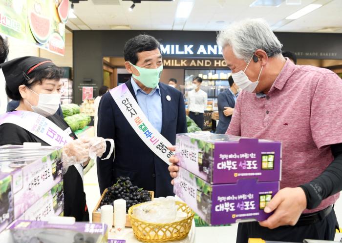 ![]() [뉴스시선집중 김시훈 기자] 윤화섭 안산시장은 12일 이마트 고잔점에서 열리고 있는 ‘대부포도위크’ 행사장을 찾아 특별판촉행사를 진행했다. 윤 시장은 임귀수 잎맞춤포도공선출하회 대표 등 농업인과 함께 100박스 한정 ‘대부도 섬포도’를 50% 가격에 판매하는 깜짝 할인행사에 직접 나섰다. 윤 시장은 “코로나19 사태 장기화로 소비가 위축되고 긴 장마까지 겹치면서 어려움을 겪고 있는 포도재배 농가에 조금이나마 힘을 보태기 위해 행사를 마련했다”며 “맛있는 대부포도를 더욱 많은 시민이 즐길 수 있도록 노력하겠다”고 말했다. 한편 이날을 마지막으로 종료되는 대부포도위크 행사는 이달 6일부터 실시됐으며, ‘대부도 섬포도’의 이마트 전국 지점 판매를 기념해 시와 이마트가 협력해 마련됐다. |
