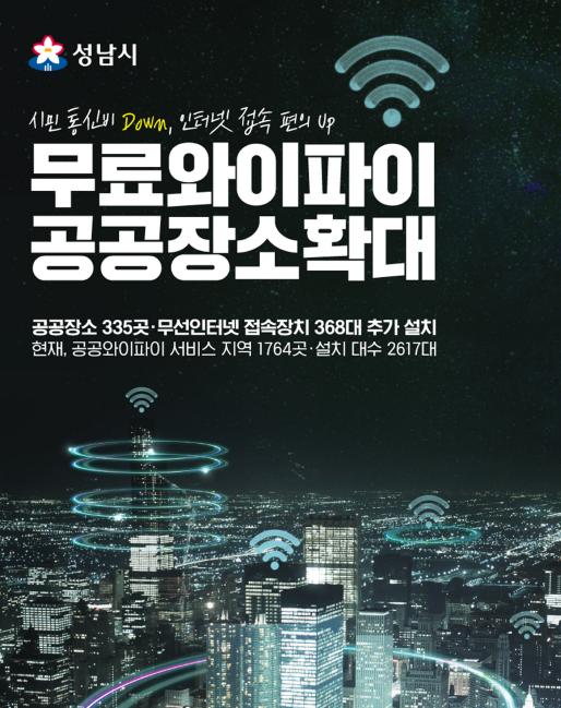 시는 2013년부터 무료 공공와이파이 구축사업을 펴 현재 시내버스 839대, 시내·광역버스 정류장 400곳, 공원 81곳, 문화·체육시설 14곳, 탄천 주변 35곳, 전통시장 26곳 등에서 서비스를 이용할 수 있다.