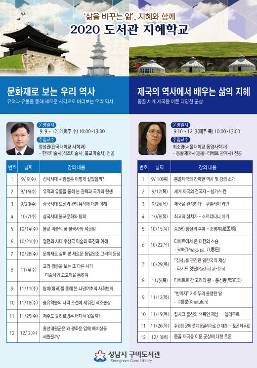 한국사와 세계사를 다루는 2가지의 인문학 강좌가 12회씩 각각 매주 수요일과 목요일 오전 10시 구미도서관 3층 시청각실에서 열린다.