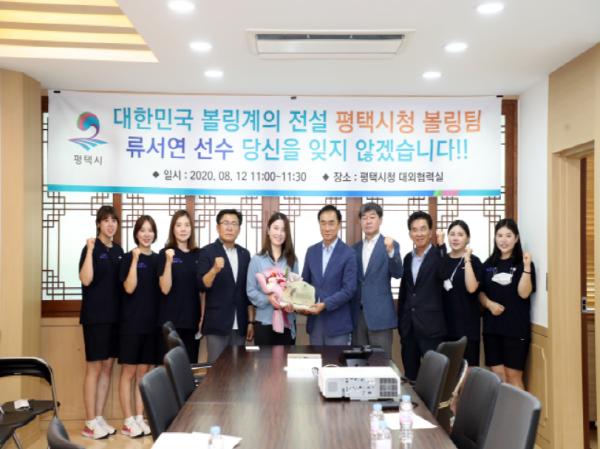 평택시(시장 정장선)는 지난 12일 시청 대외협력실에서 평택시청 직장운동경기부 볼링팀 류서연 선수의 은퇴식을 열었다.