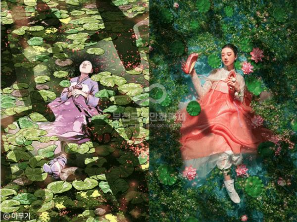 수중촬영방식을 활용해 ‘수담스튜디오’와 사진작가 잔도, 수중촬영 전문모델 아이리아의 콜라보로 진행된 이번 수중화보는 이무기 작가가 뽑은 <곱게 자란 자식>의 대표 이미지를 오마주하는 컷으로 시작됐다.
