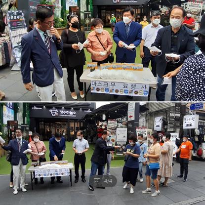 사랑의 마스크무료 나눔행사는를 오가는 시민과 외국인에게 좋은 호응을 받았다.