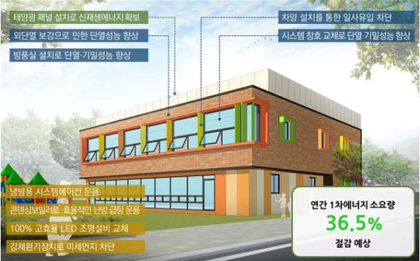이번 그린리모델링 사업 목표는 에너지, 생활환경, 신기술, 미관 등을 신축건물 수준으로 설정하였으며 ▲ 에너지 절감율 최소 30%이상 개선, ▲ 환기시스템 설치로 실내 미세먼지 75% 이상 절감 효과를 기대하고 있다.