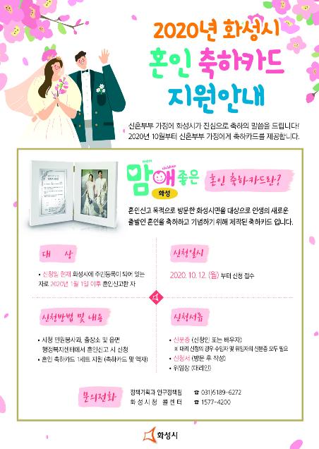 [뉴스시선집중, 박광옥기자] 화성시가 신혼부부의 새로운 인생을 축하하고 가정의 소중한 의미를 되새길 수 있도록 혼인 축하카드를 배포한다.