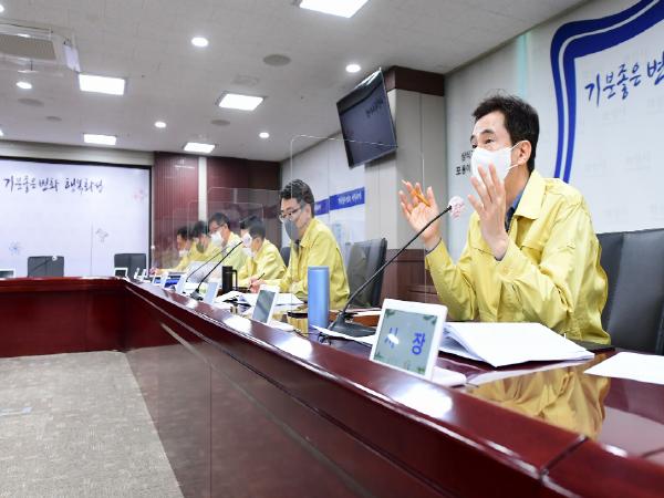 [뉴스시선집중, 박광옥기자] 화성시는 12일 중앙재난안전대책본부의 사회적 거리두기가 1단계로 하향 조정됨에 따라 시청본관2 상황실에서 서철모 화성시장 주재의 재난안전대책본부 긴급대책회의를 열고 공공시설 운영재개 및 방역 관련 후속조치 계획에 대해 논의했다.