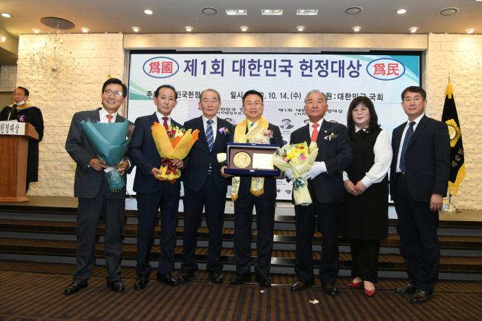 [ 뉴스시선집중 이학범 기자 ] 안승남 구리시장이 14일 여의도 CCMM빌딩에서 사단법인 대한민국헌정회 주관으로 개최한‘제1회 대한민국 헌정대상(자치행정 부문)’에 영예의 수상자로 시상했다.