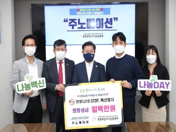 이들은 모두 광명시 <청년창업자금 지원사업>을 통해 초기 사업화에 도움을 받은 스타트업 대표들이며, 코로나19로 더욱더 어려워진 지역취약계층 지원을 위해 광명시사회복지협의회에 각각 희망성금 100만원씩을 기부했다.