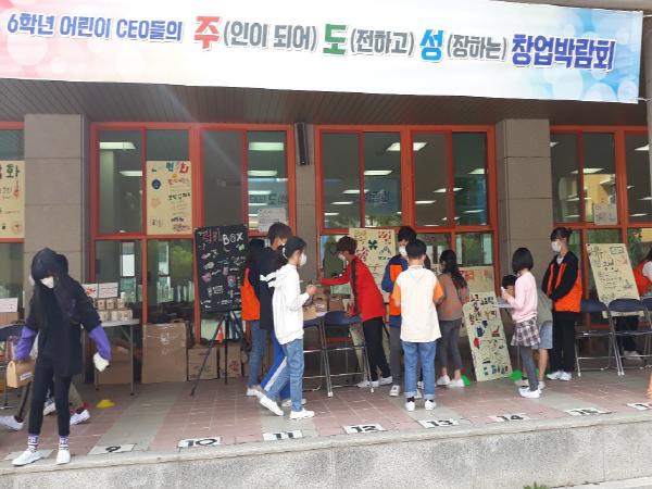 올해로 3회째를 맞는 창업박람회는 초등학생에게 다소 생소한 ‘창업’을 주제로 6학년 학생 전체가 원격과 대면을 혼합한 총 20차시의 온-오프라인 연계교육 프로젝트로 진행되었다. 행사 기획부터 제작, 포장, 판매까지 일련의 과정을 학생 주도로 이끌어 가는 활동이라 창업에 대한 관심뿐 아니라 자기주도적 역량 신장 기회를 제공하여 학부모로부터 큰 호응을 받았다.