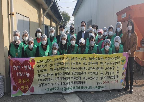 권영자 회장은 “서운면 새마을지회 28명의 후원금으로 밑반찬 재료 및 참기름을 구입했다”며 “관내 어려운 이웃들이 저희가 정성껏 준비한 반찬을 드시고, 추워진 날씨에 감기에 걸리지 않고 건강하시길 바란다”고 말했다.