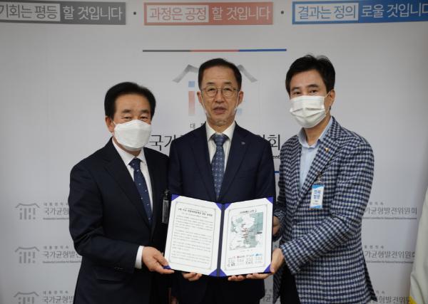 서철모 시장은 이날 김사열 균형발전위원회 위원장에게 건의문을 전달하며 제4차 국가 철도망 구축계획에 수도권 내륙선 철도구축사업을 포함해 줄 것을 당부했다.