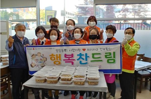 행복찬드림사업은 아름동지역사회보장협의체가 매월 정기적으로 장애인·기초생활수급자·한부모가정 등 고위험가구와 일촌을 맺고 건강점검과 밑반찬을 제공하는 사업이다.