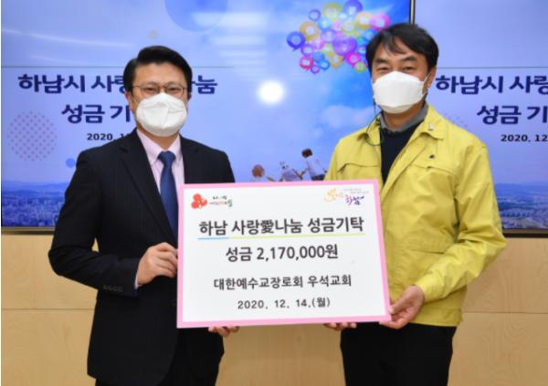 [뉴스시선집중, 이학범기자] 하남시는 대한예수교장로회 우석교회가 지난 14일 이웃돕기 성금 217만원을 기탁했다고 밝혔다.