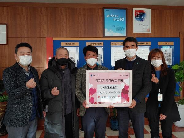 같은날 이동읍송전민속5일장 상인회에서도 회원들이 십시일반으로 마련한 성금 100만원을 기탁했다.