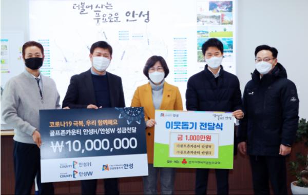 [뉴스시선집중, 박광옥기자] 안성시는 ㈜골프존카운티 안성W·안성H에서 15일 저소득 아동들을 위한 성금 1000만원을 안성시에 기탁했다고 밝혔다.