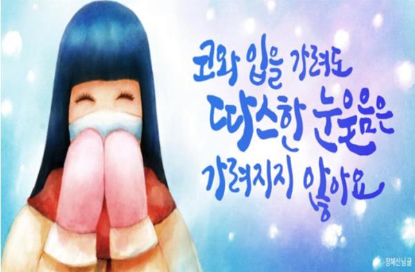 '코로나19 , 마스크로 코와 입은 가려져도 따스한 눈웃음은 가릴 수 없어…'