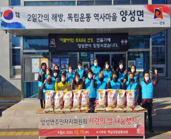 사랑의 쌀 나눔 행사를 통해 주민자치위원회는 쌀 10kg 30포를 적십자양성봉사회에 기부하여 양성면 관내 어려운 이웃에게 전달할 계획이다.