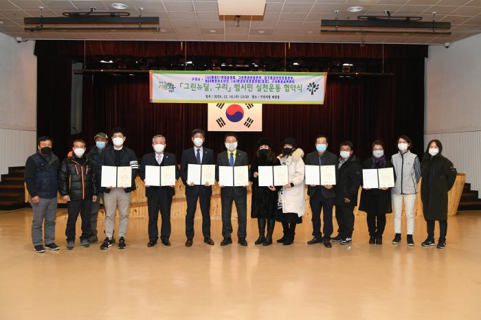 [ 뉴스시선집중 이학범 기자 ] 구리시(시장 안승남)는 16일 구리시청 1층 대강당에서 환경 관련 단체와 그린뉴딜, 구리’ 범시민 실천운동 추진을 위한 협약을 체결했다.
