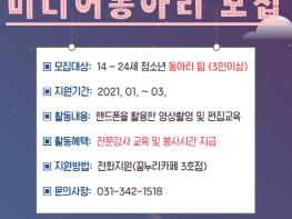 [뉴스시선집중, 박광옥기자] 의왕시청소년수련관에서 경기도와 의왕시가 함께 지원하는 공공청소년수련시설 프로그램 운영지원 사업을 실시한다.