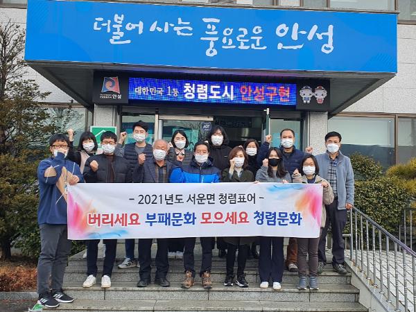 김건호 서운면장은 “코로나19 등으로 바쁜 업무 가운데도, 청렴표어 공모에 많은 관심을 가져준 직원들께 감사하다”며 “청렴은 공직생활 중 꼭 실천해야 할 덕목인 만큼, 직원들이 청렴의식 생활화를 위해 노력해 주길 바란다”고 말했다.