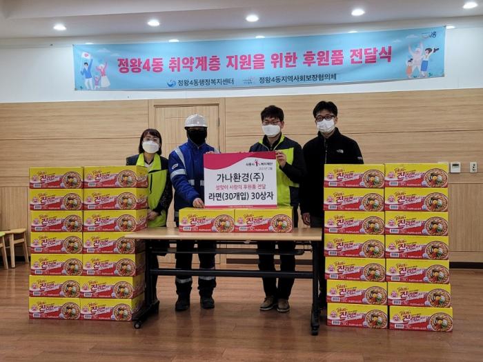 이날 배무섭 ㈜가나환경 대표는 정왕3동과 정왕4동 지역사회보장협의체에 각각 라면 30상자(60만원 상당)를 후원했다.