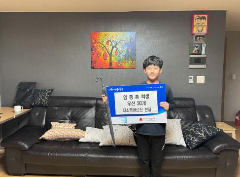 임 군은 학생회장에 당선됐고, 이후 공약 이행을 위해 용돈을 꼬박꼬박 모아 우산 30개를 구입해 군포시 복지정책과에 전달했다.