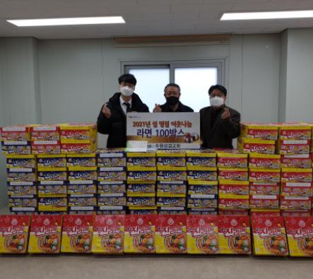 [뉴스시선집중, 윤금아기자] 수원시 팔달구 매교동에 소재한 수원성결교회에서는 2월 3일(수) 저소득층에게 전달할 라면 100박스를 매교동 행정복지센터에 전달하였다.