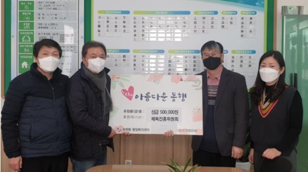 [뉴스시선집중, 윤금아기자] 지난 2일 수원시 영통구 원천동 체육진흥위원회는 설 명절을 맞이하여 원천동 지역의 저소득 주민들을 위해 성금 50만원을 기부했다.