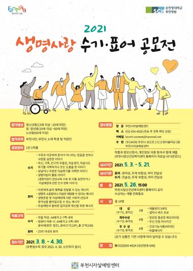 [뉴스시선집중, 박동혁기자] 부천시자살예방센터는 3월 8일부터 4월 30일까지 생명의 소중함을 되새기고 자살 예방에 대한 인식을 높이기 위해 생명사랑 수기·표어 공모전을 실시한다.