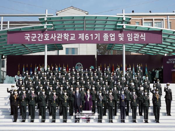 [뉴스시선집중, 조선호기자] 문재인 대통령은 5일 오후, 대전 자운대 국군간호사관학교에서 열린 제61기 졸업 및 임관식에 참석해 정예 간호장교로 거듭난 생도들을 축하했다.