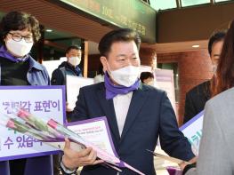 박승원 광명시장은 직원들이 출근하는 시간인 아침 8시부터 9시까지 시청 본관 앞에서 세계 여성의 날을 상징하는 장미를 직원들에게 나눠주며 성 평등한 조직문화 만들기에 동참해 줄 것을 당부했다.