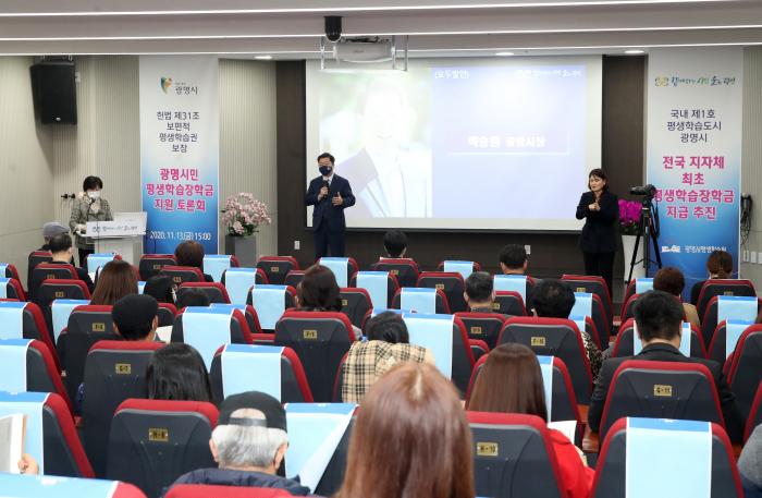 광명시민 평생학습 장학금은 헌법과 법률에 따라 국가가 보장해야 할 보편적 시민권이며, 광명시에 3년 이상 거주한 시민(성인)이 언제, 어디서나 자신이 원하는 분야를 학습할 수 있도록 광명시에서 생애 한 번 지원하는 기본소득 개념의 평생 학습비이다.