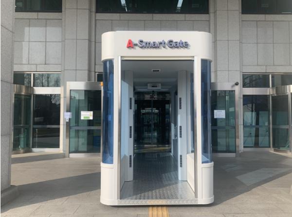 스마트게이트란 건물을 출입하는 사람이 게이트 내부를 통과하는 동안 고성능 필터인 헤파필터가 초미세먼지와 바이러스를 빨아들이고, 자외선(UV-C)을 활용해 살균하는 통로형 공기청정시스템이다.