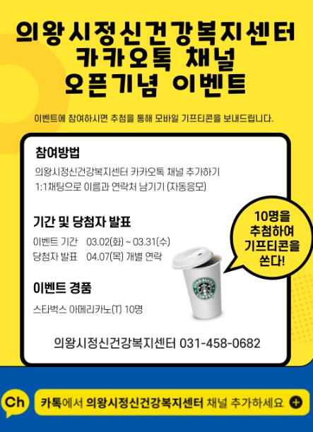 또한, 3월 한 달간 카카오톡 채널 오픈 이벤트를 실시한다. 참여방법은 카카오톡 채널 친구추가 후, 채팅창에 메시지를 남기면 자동 응모되며, 참여자 중 10명을 무작위 추첨해 모바일 기프티콘을 발송할 예정이다.
