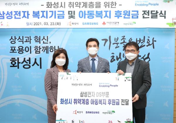 [뉴스시선집중, 박광옥기자] 삼성전자 DS부문이 23일 화성시에 복지기금 2억 원을 전달하고 함께 취약계층 아동 후원을 약속했다.